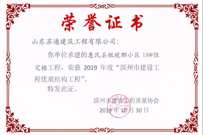 山東蘇通建筑工程有限公司,創(chuàng)建于2009年8月。目前擁有房屋建筑工程施工總承包壹級(jí)、市政公用工程施工總承包叁級(jí)、水利水電工程施工總承包叁級(jí)資質(zhì),同時(shí)還具有建筑裝修裝飾工程專(zhuān)業(yè)承包貳級(jí)、消防設(shè)施工程專(zhuān)業(yè)承包貳級(jí)、鋼結(jié)構(gòu)工程專(zhuān)業(yè)承包叁級(jí)、建筑機(jī)電安裝工程專(zhuān)業(yè)承包叁級(jí)等專(zhuān)業(yè)承包資質(zhì)。 公司總部坐落于山東省濱州市濱城區(qū)黃河十二路877號(hào),現(xiàn)有辦公面積約2000平方米,機(jī)構(gòu)設(shè)黨支部工會(huì)辦公室、總經(jīng)理辦公室、綜合辦公室、工程管理部、經(jīng)營(yíng)預(yù)算部、資產(chǎn)財(cái)務(wù)部、材料設(shè)備部、運(yùn)行管理部、法律事務(wù)部等多個(gè)職能部門(mén)。公司管理體系已經(jīng)通過(guò)了GB/T 19001及GB/T 50430質(zhì)量管理體系、GB/T 24001環(huán)境管理體系(EMS)、GB/T 28001職業(yè)健康安全管理體系(OHSMS)等體系的認(rèn)證。 公司承建完工了濱州市建大教師之家、建大清怡苑、香格里拉水岸綠城住宅小區(qū)、雙泰建大城、曲阜崇德公館住宅小區(qū)、北海新區(qū)御景藍(lán)灣住宅小區(qū)、沾化德榮國(guó)際華城住宅小區(qū)、惠民橄欖郡住宅小區(qū)等工程項(xiàng)目,目前在建工程項(xiàng)目有:濱州市頤高國(guó)際電子商務(wù)產(chǎn)業(yè)園住宅小區(qū)項(xiàng)目、濱州市東盛國(guó)際項(xiàng)目、高新區(qū)建大中央華府住宅小區(qū)項(xiàng)目、濱州市融匯新里程住宅小區(qū)項(xiàng)目、濱州市建大秦皇壹號(hào)住宅小區(qū)項(xiàng)目、濱州市森林花...